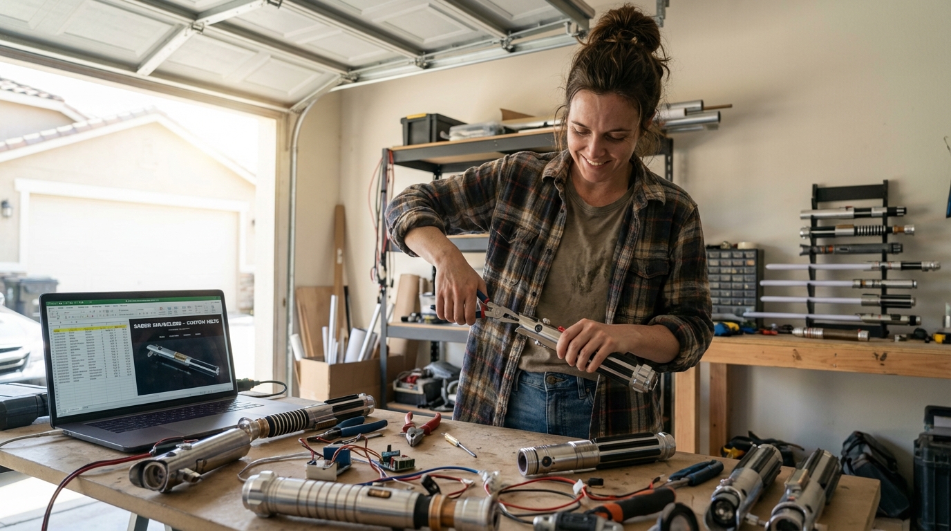 Julliana had a small Etsy shop—30 custom saber builds sold, customers asking for more.
