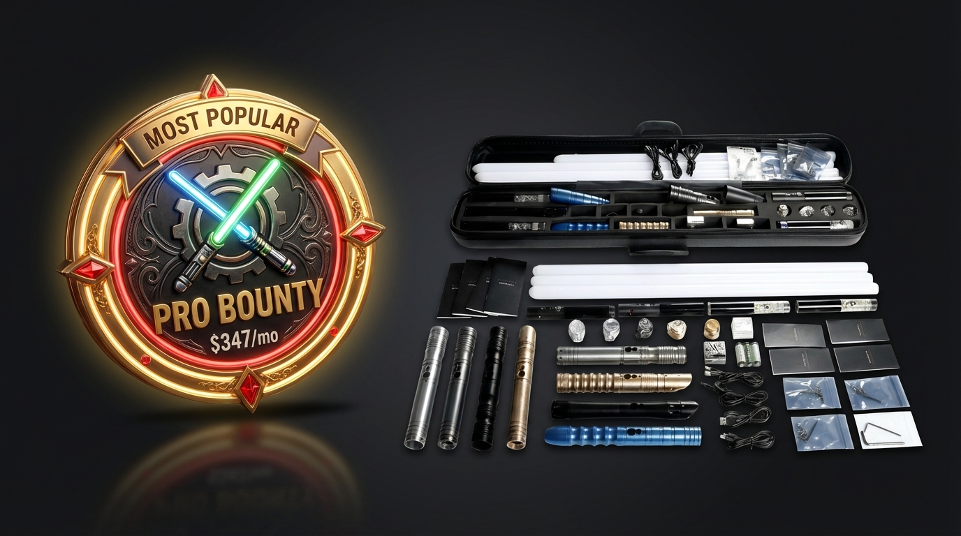 Master Bounty Kit ($397/month): 4 hilts, 3 XRGB3 + 1 Xeno 3.0 premium kit, Neopixel blade, 1-on-1 coaching